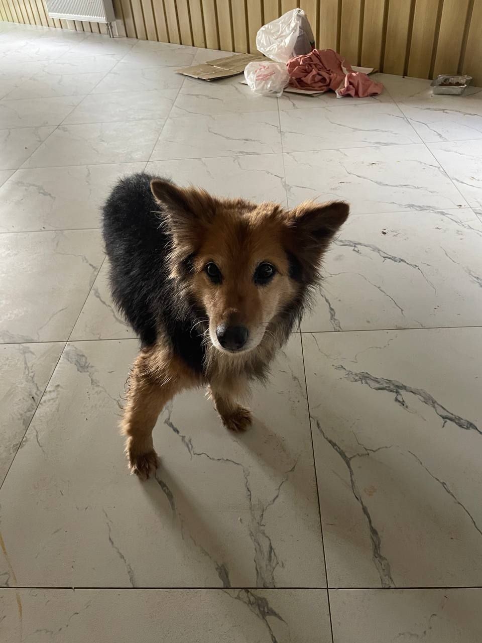 Найдена собака, мальчик, 5-6 лет 11 кг, ошейник,  спокойный, явно..