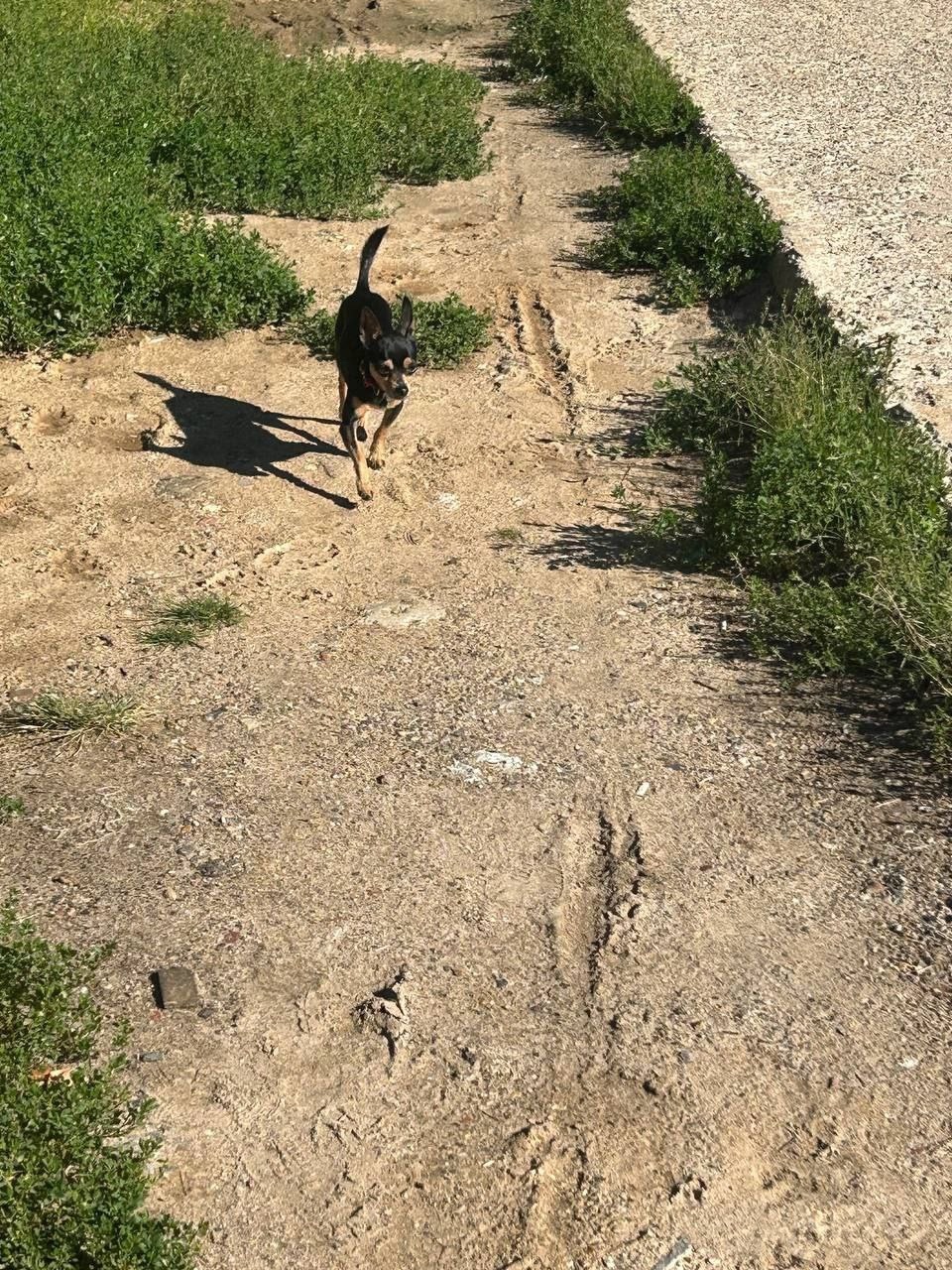Мелкий той-терьер в розовом ошейнике. Неделю бегает вдоль пруда и возле магазина «пионер» во ВНИИСОК. В руки не дается, боится