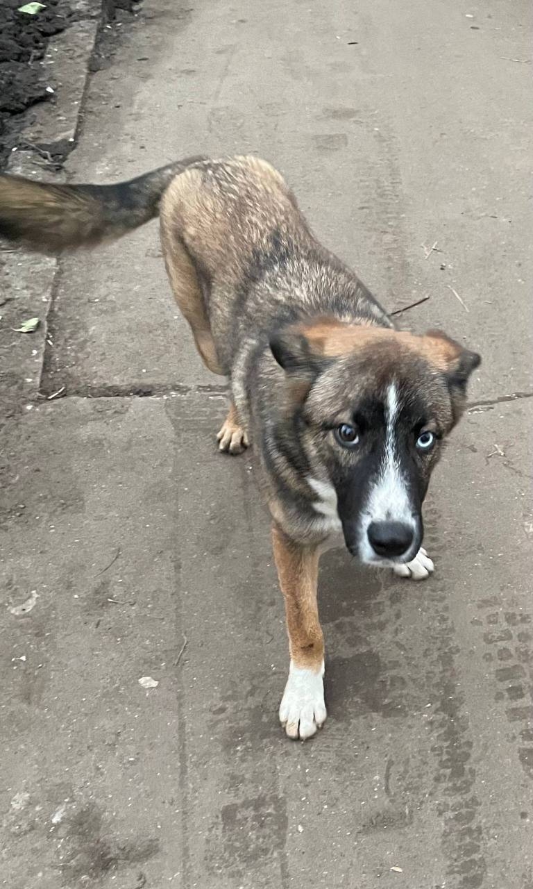 С 05.12 бегала по улице. Молодая, один глаз голубой.