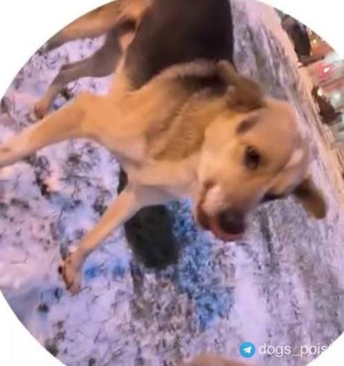 Увидела собаку около остановки, худая и лежала клубочком на снегу. Собака молодая.