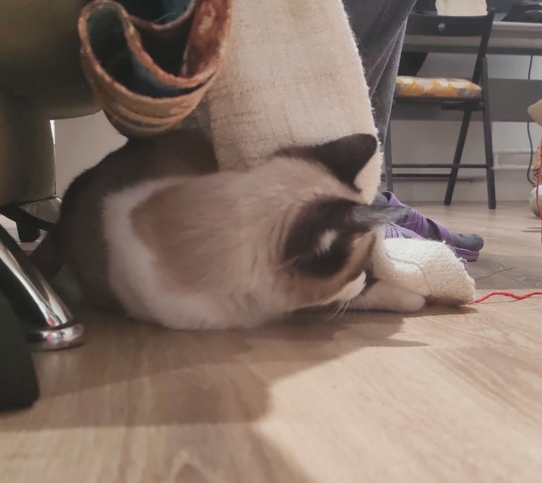 Нашли кота(6 февраля) , в парке у метро Физтех, по виду примерно 4 месяца, похож на породу сноу шу