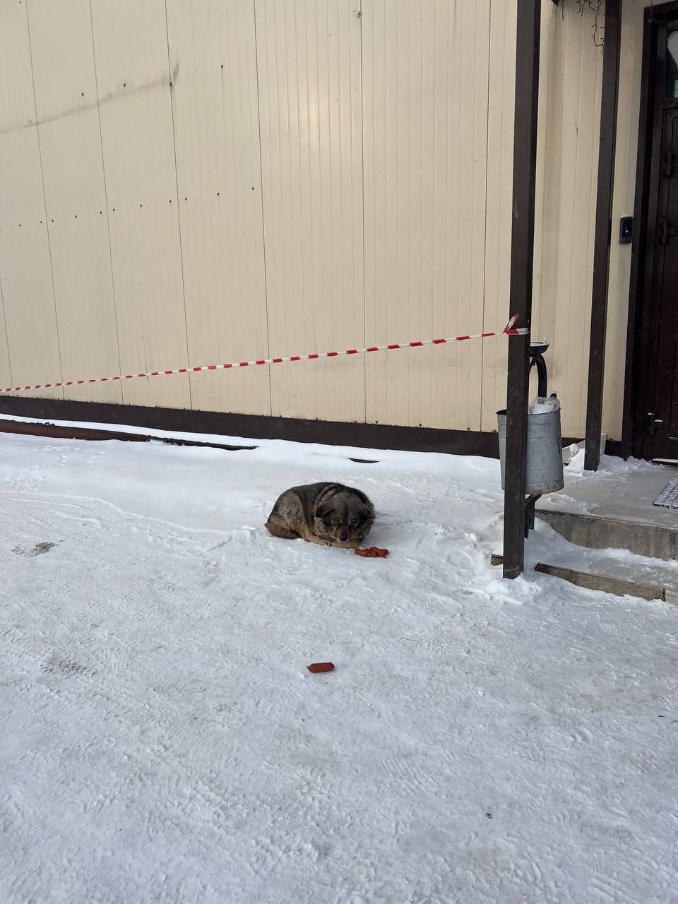 Собака прям мерзнет лежит на Кубинке Можайское тц маленький рядом со строительным рынком который