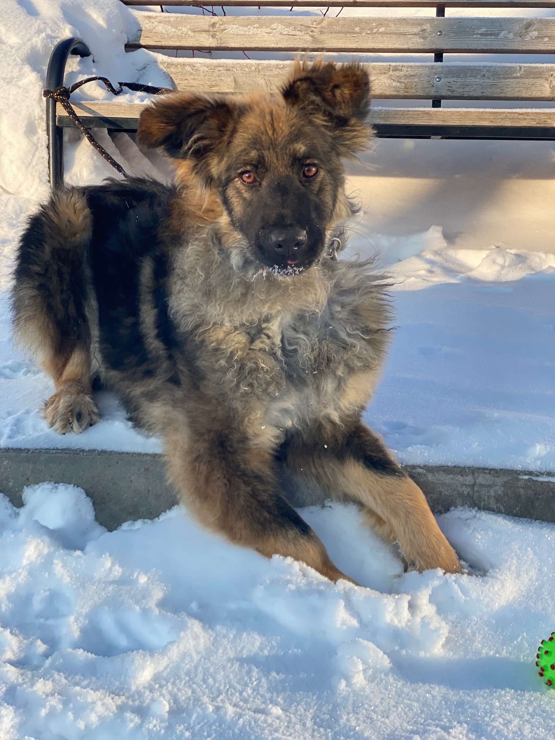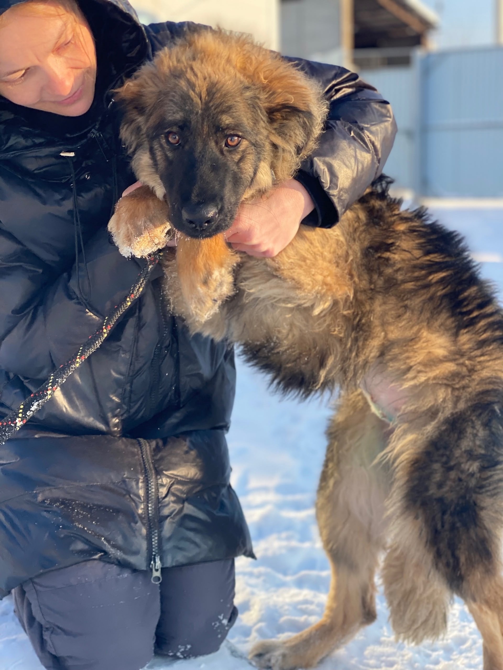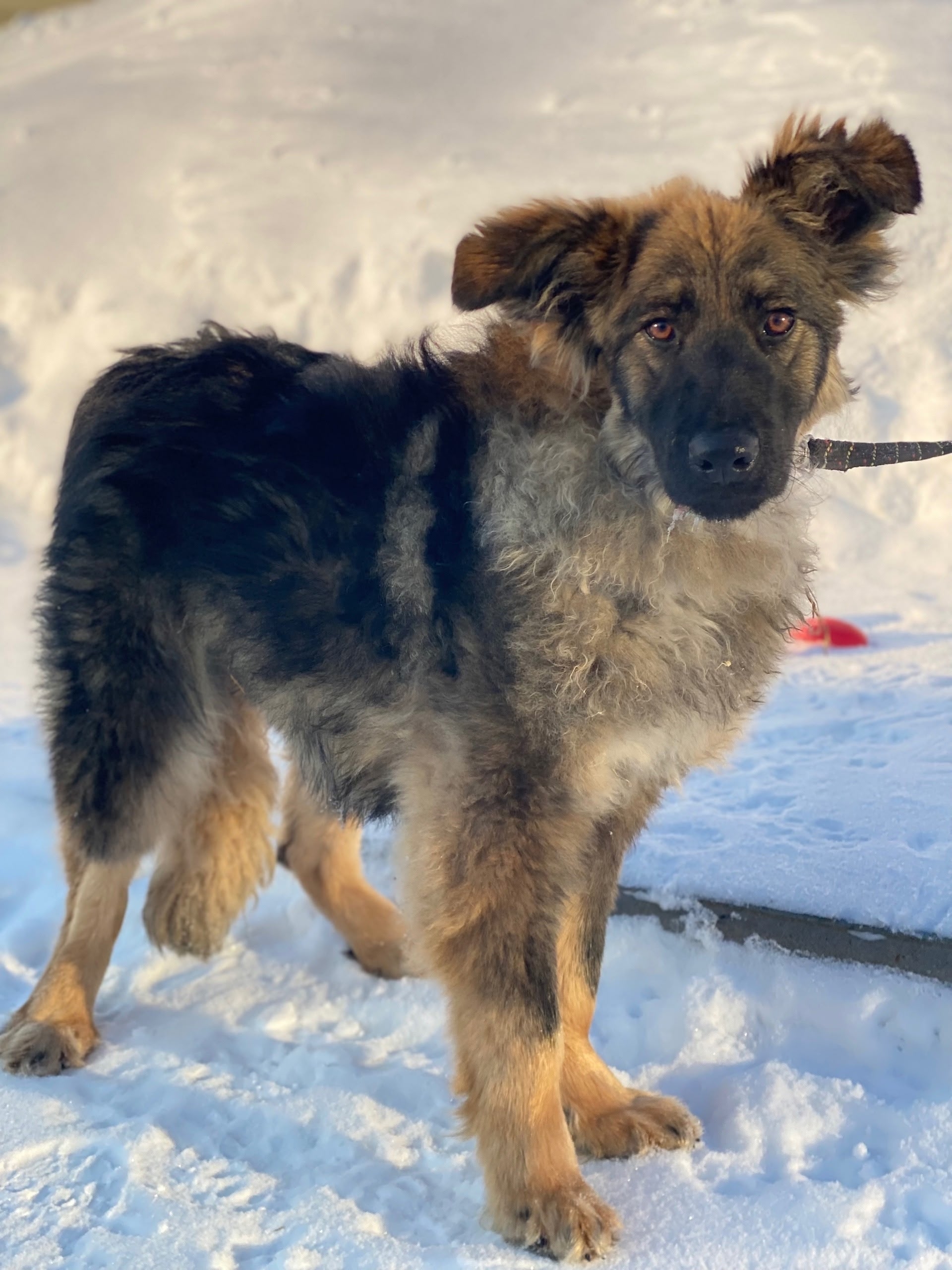 Лохматая девчушка-подросток – метис немецкой овчарки.