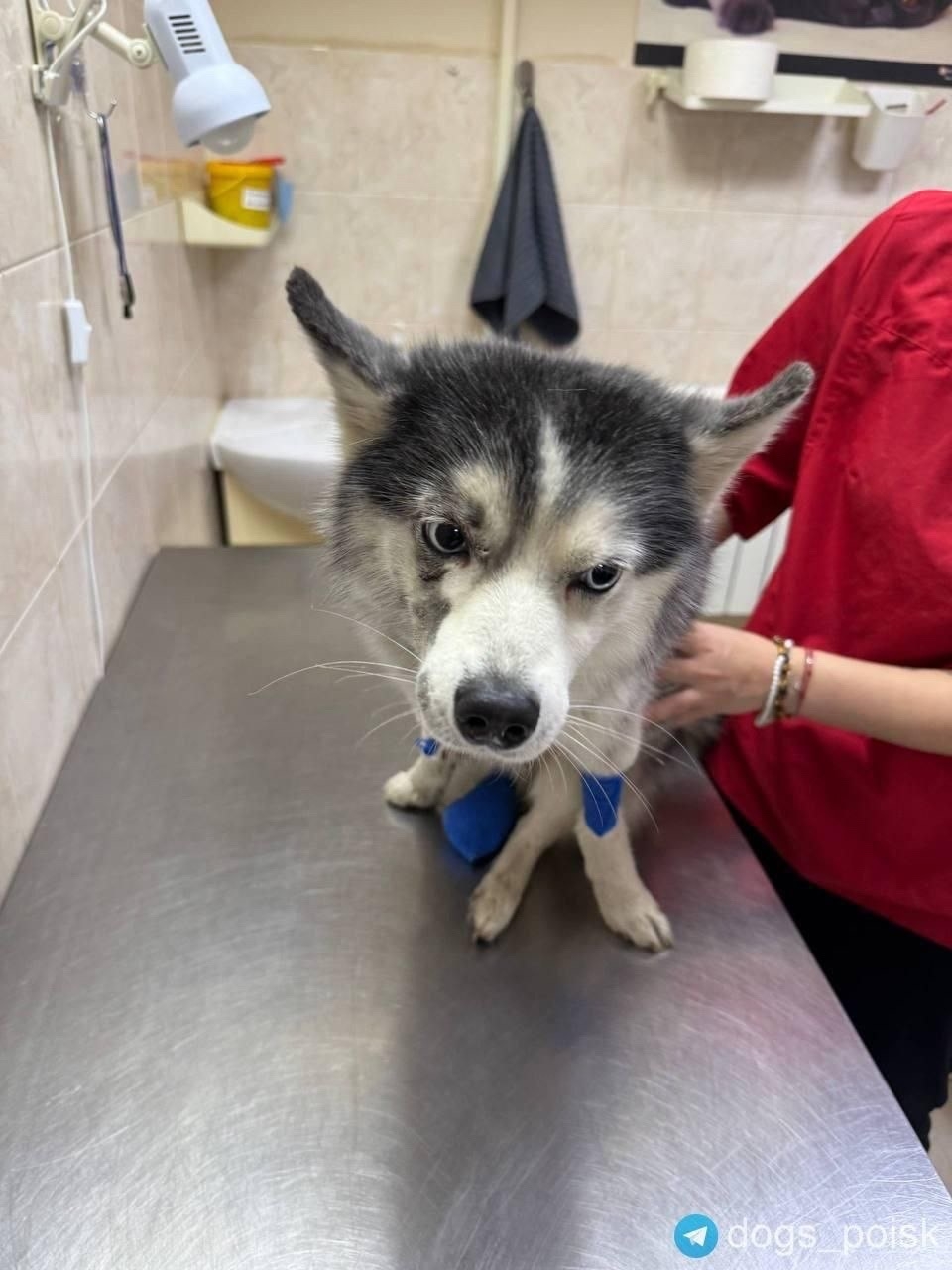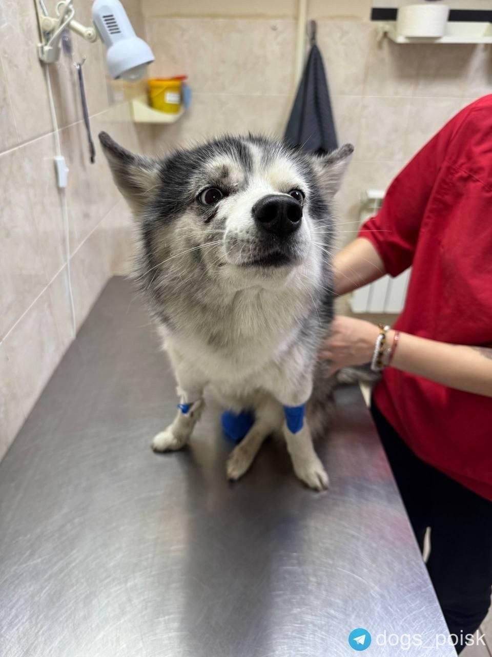 ❗️Возле метро Кунцевская кто то сбил хаски помски/кли-кай(?), голубые глаза, кобель в шлейке черно-серой, возраст 1/2 года.