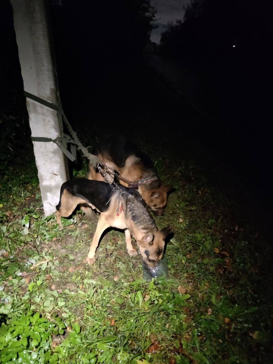 2 кобеля, на строгачах, привязаны к столбу!!!