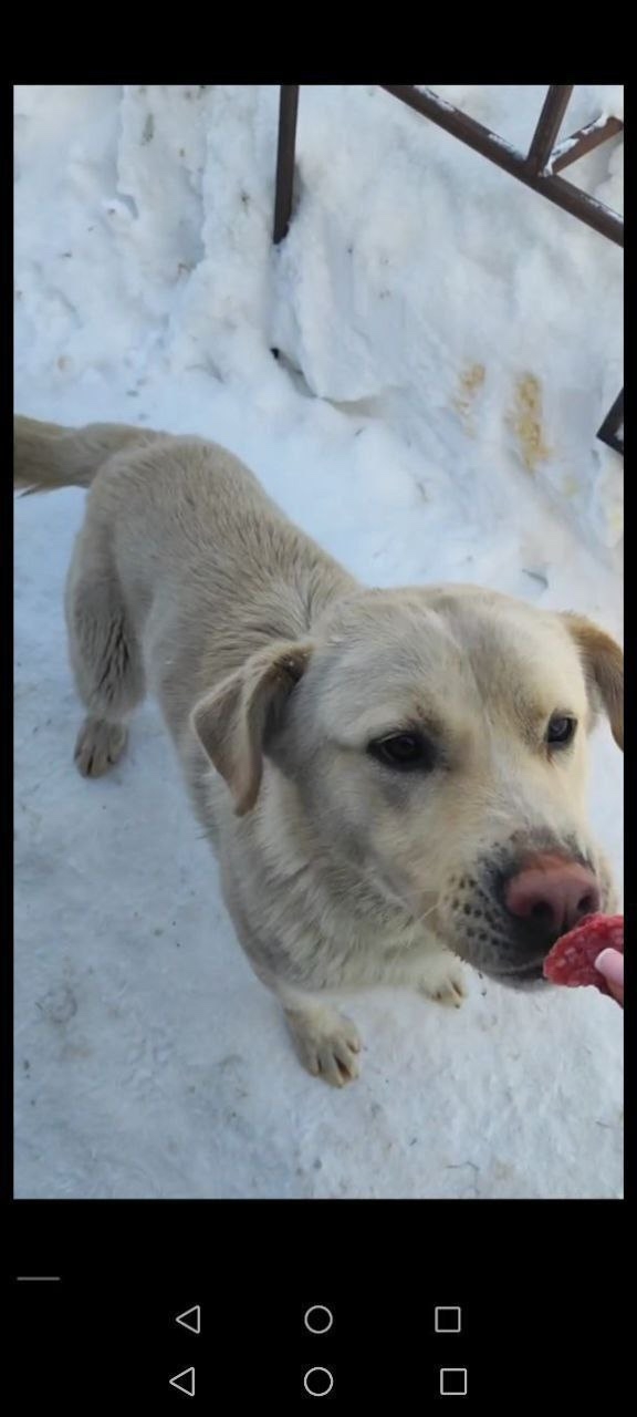 Метис, кобель, светлый/палевый окрас. Был без амуниции.
