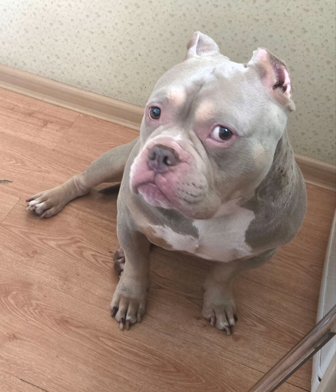 Американский Булли, кобель, 8 лет, серо-бежевый окрас, белое пятно на груди. Убежал из Байк центра в Мневниках, испугавшись грозы.