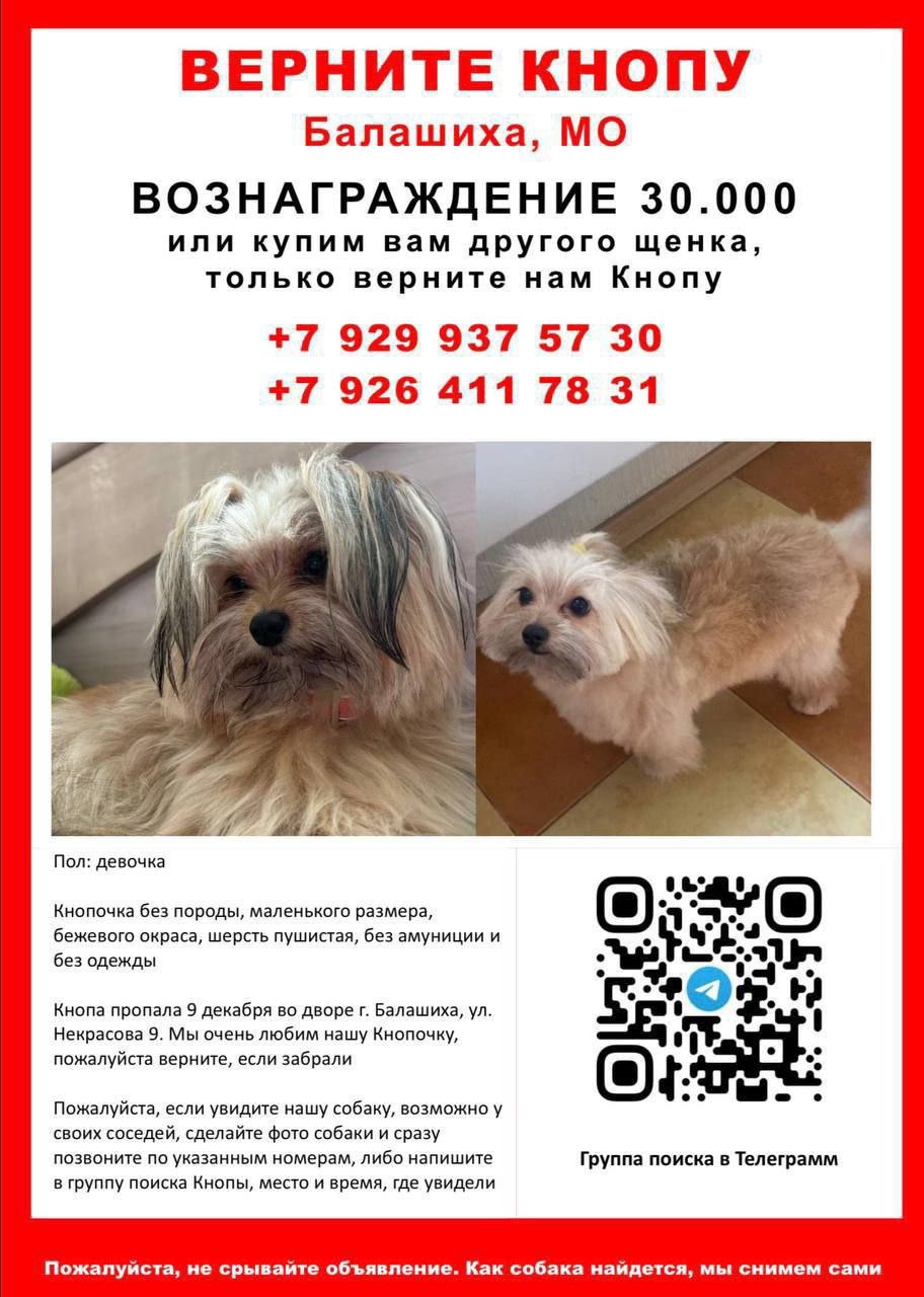 Поиски продолжаются и семья Кнопочки не сдается🙏🏽