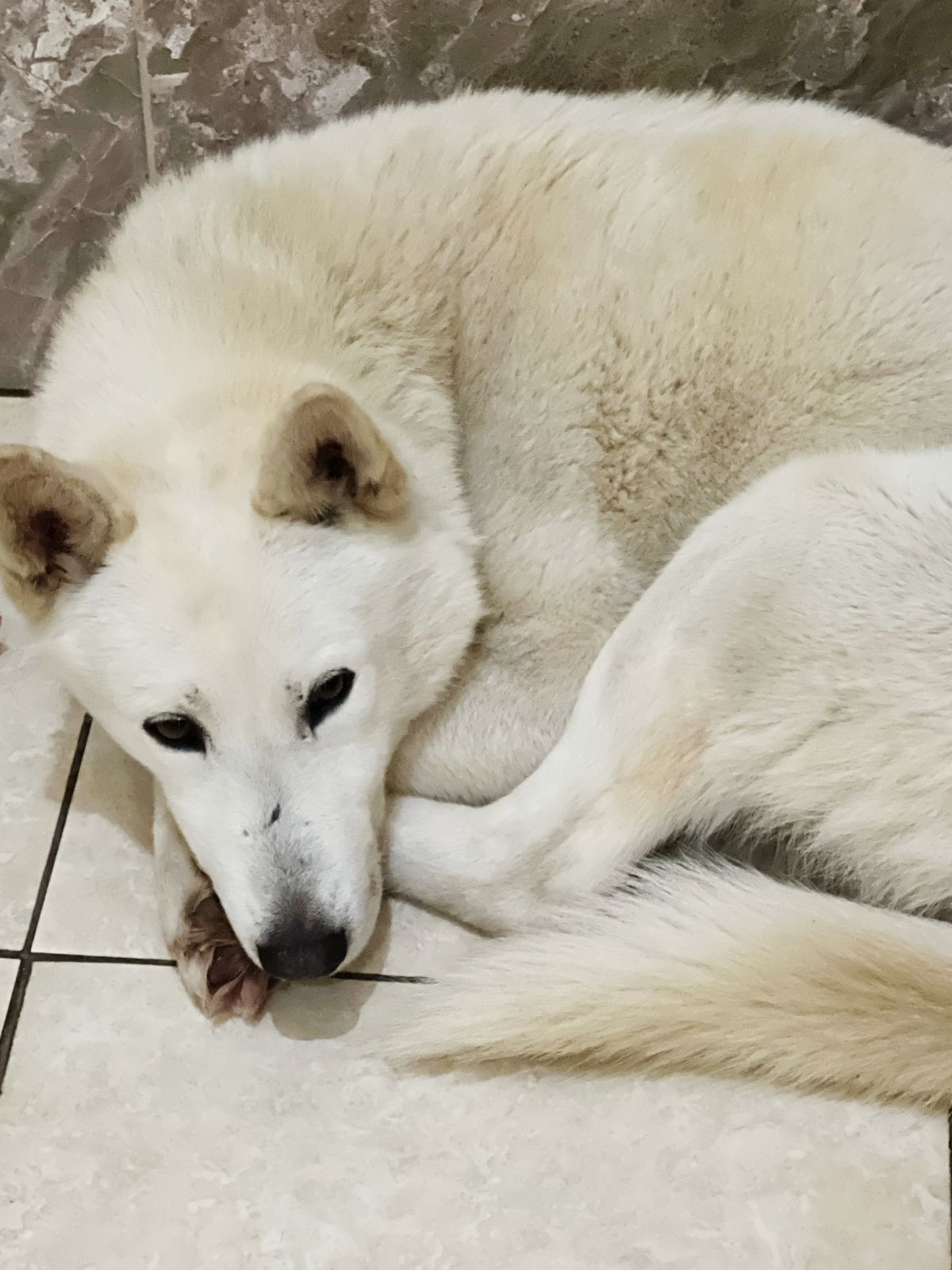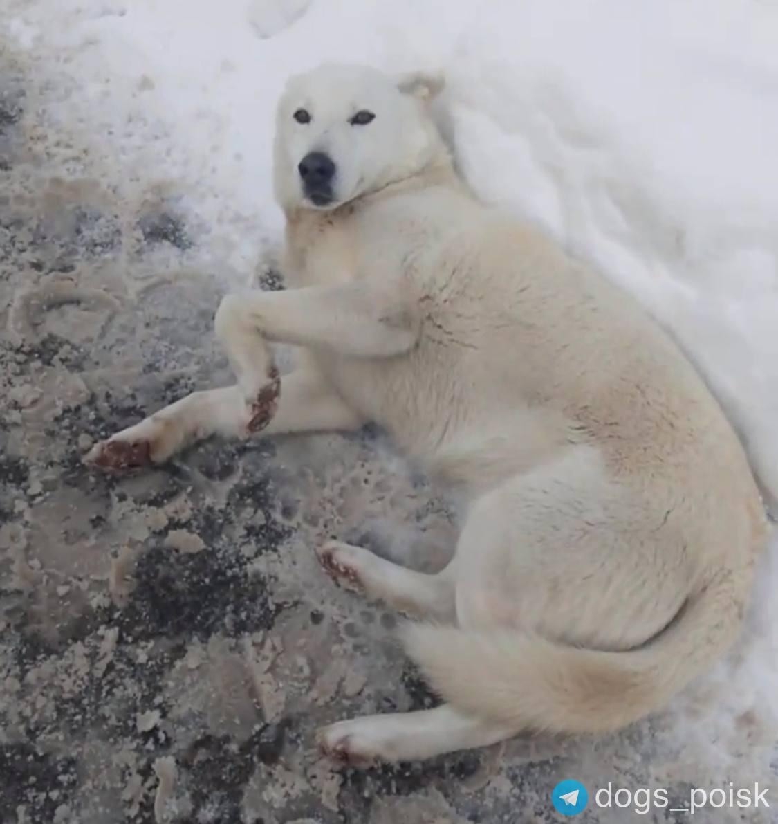 Дружелюбный, контактный ,ориентирован на человека, предположительно домашний , палевый окрас, крупный. Прихрамывал на переднюю правую лапу.