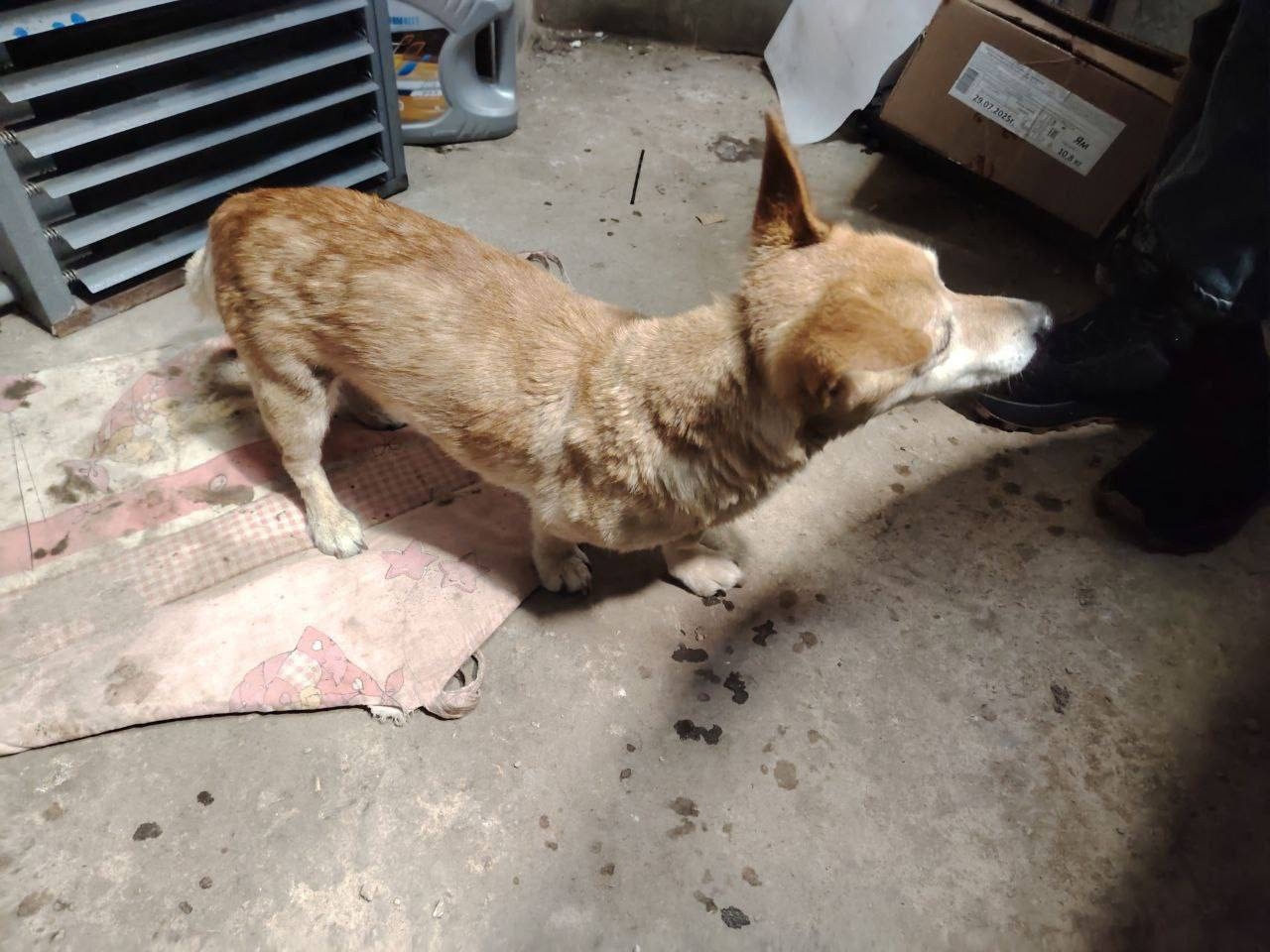 Старенький, коротколапый, подслеповатый, и явно домашний. Бедняга уже еле ходил. Живот был весь во льду!