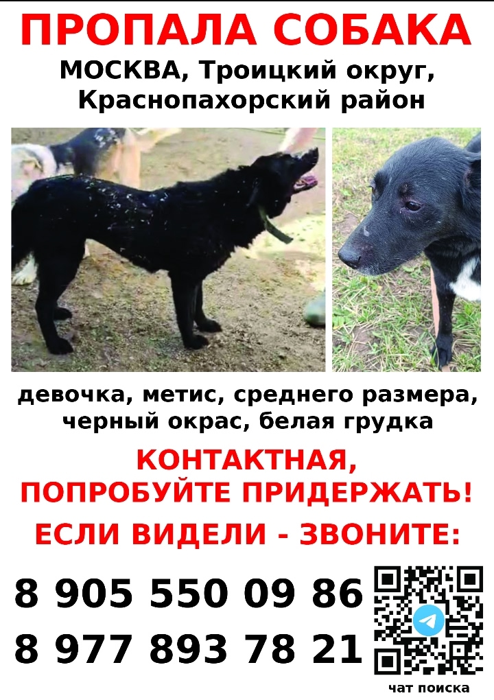3 июля 2025 года пропала собака в посёлке Былово (Краснопахровское поселение Троицкий АО).