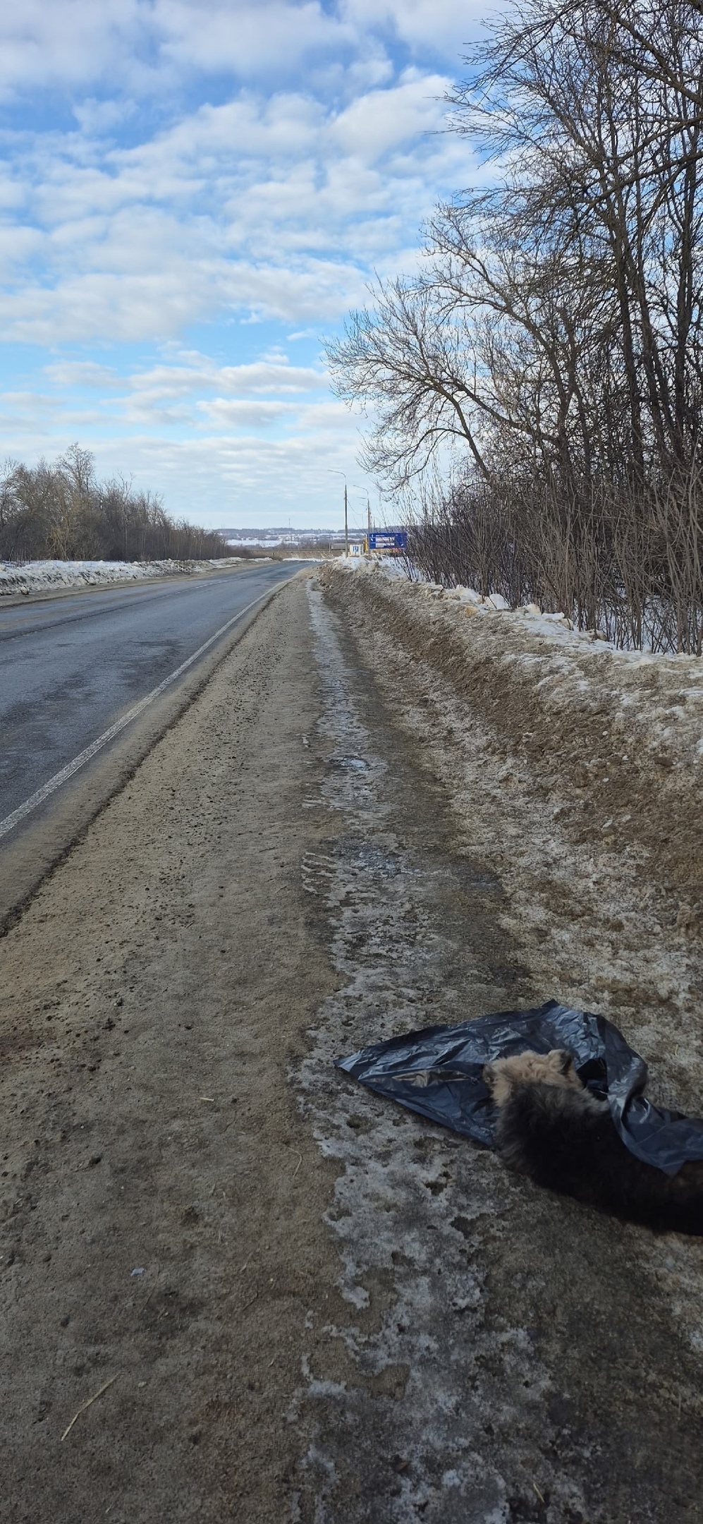 В сторону Ивлево возле дороги лежит собачка.
