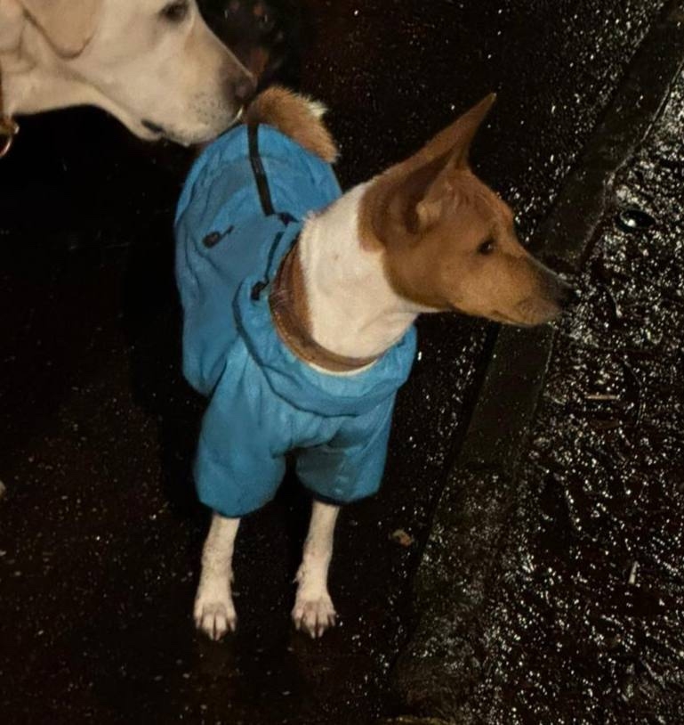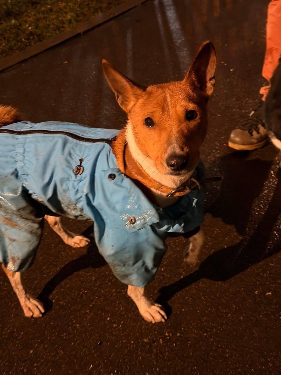 Бежала через дорогу, машина врезалась в собаку, повредила переднюю лапу.