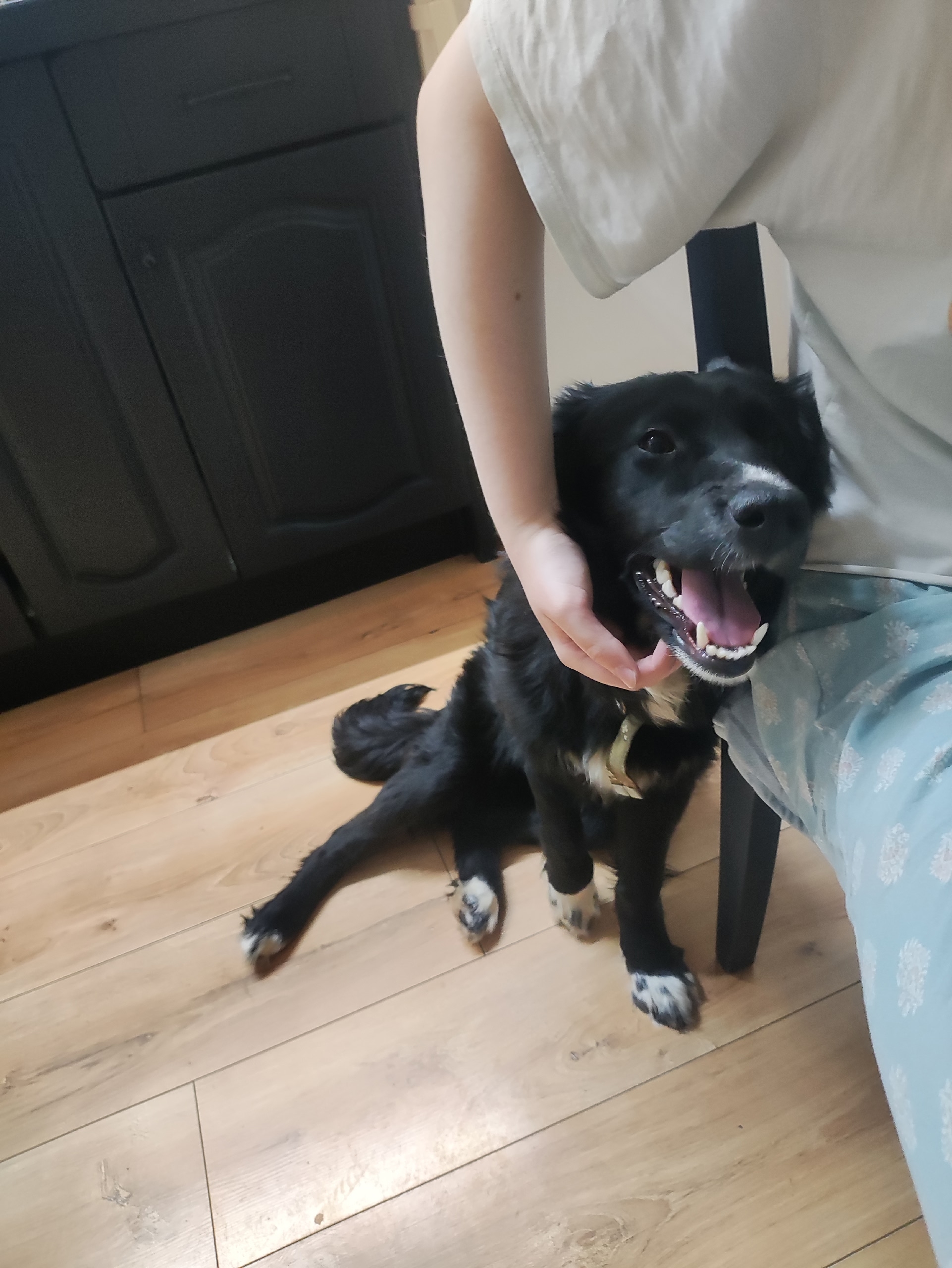 Весёлая, шкодная девчонка пристраивается в хорошие руки, возможно проживание на улице в вольере, но не на цепи. Дружелюбна к другим собакам, проживает сейчас в доме с тремя другими собаками, приучена к туалету на улице.