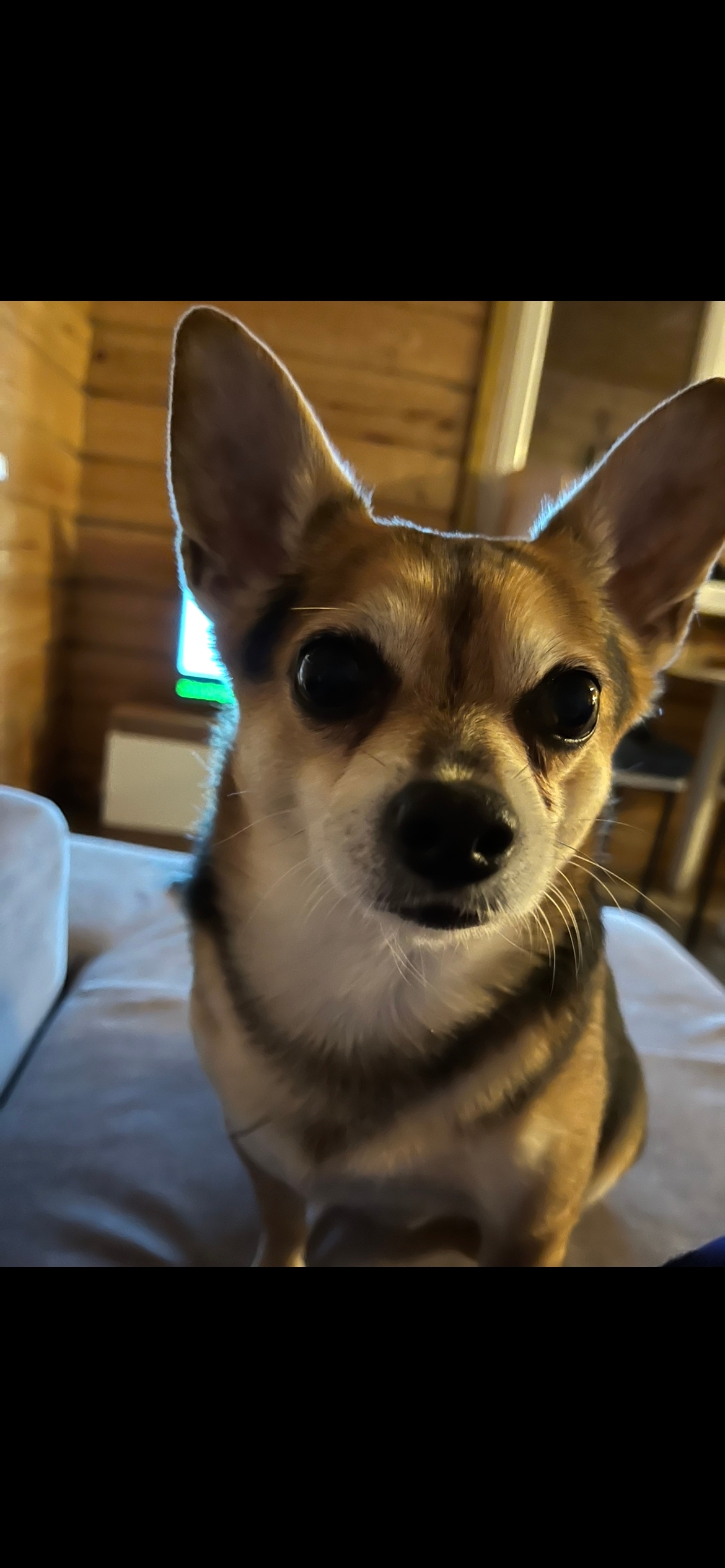 Особые приметы:стоячие уши,чёрная спинка,на голове немного седины