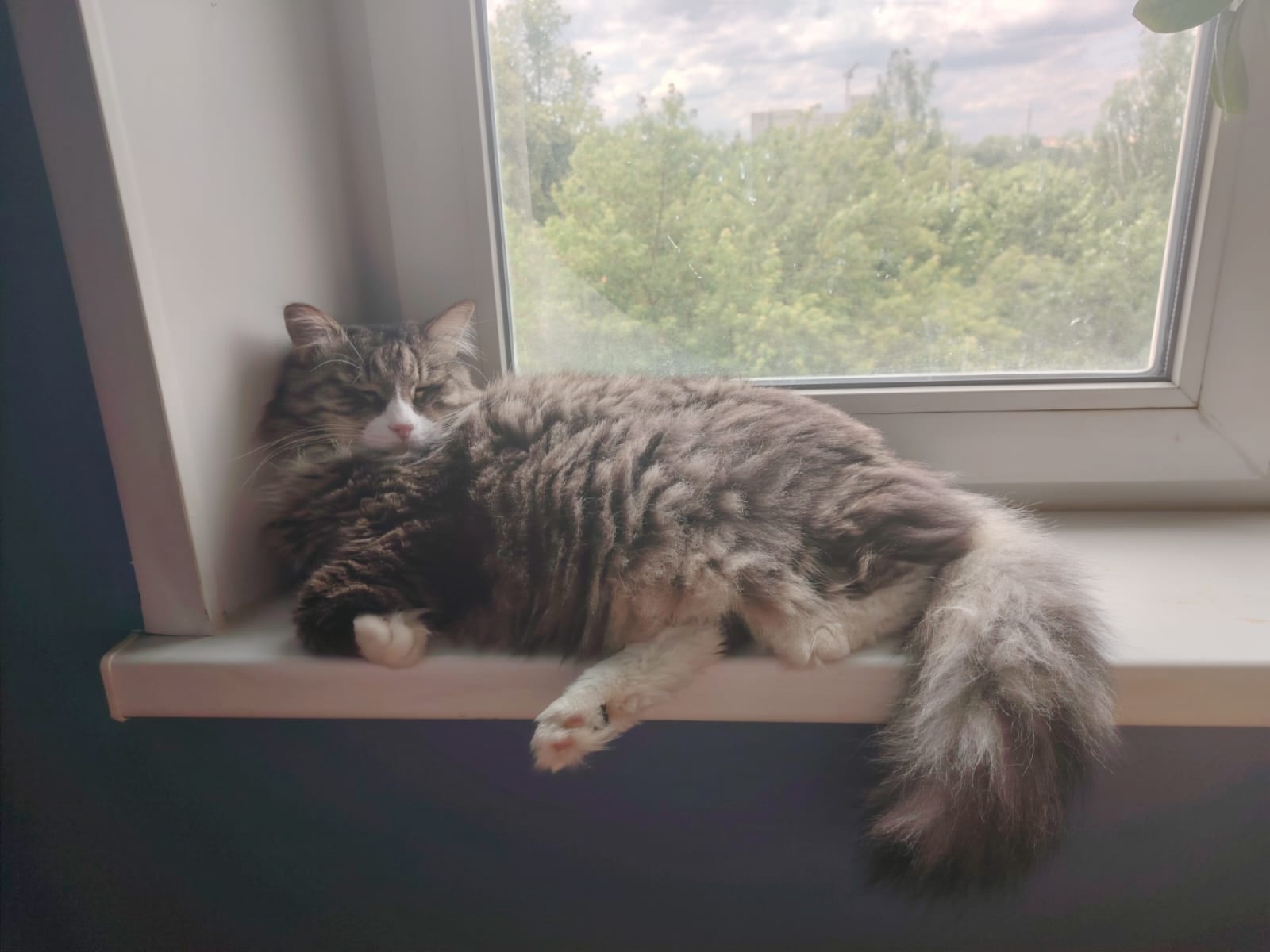 Кот убежал из десятиэтажки на Фрунзе 19-го августа. Ему 12 лет, кастрирован, чипирован. Возможно в темно-коричневой шлейке.