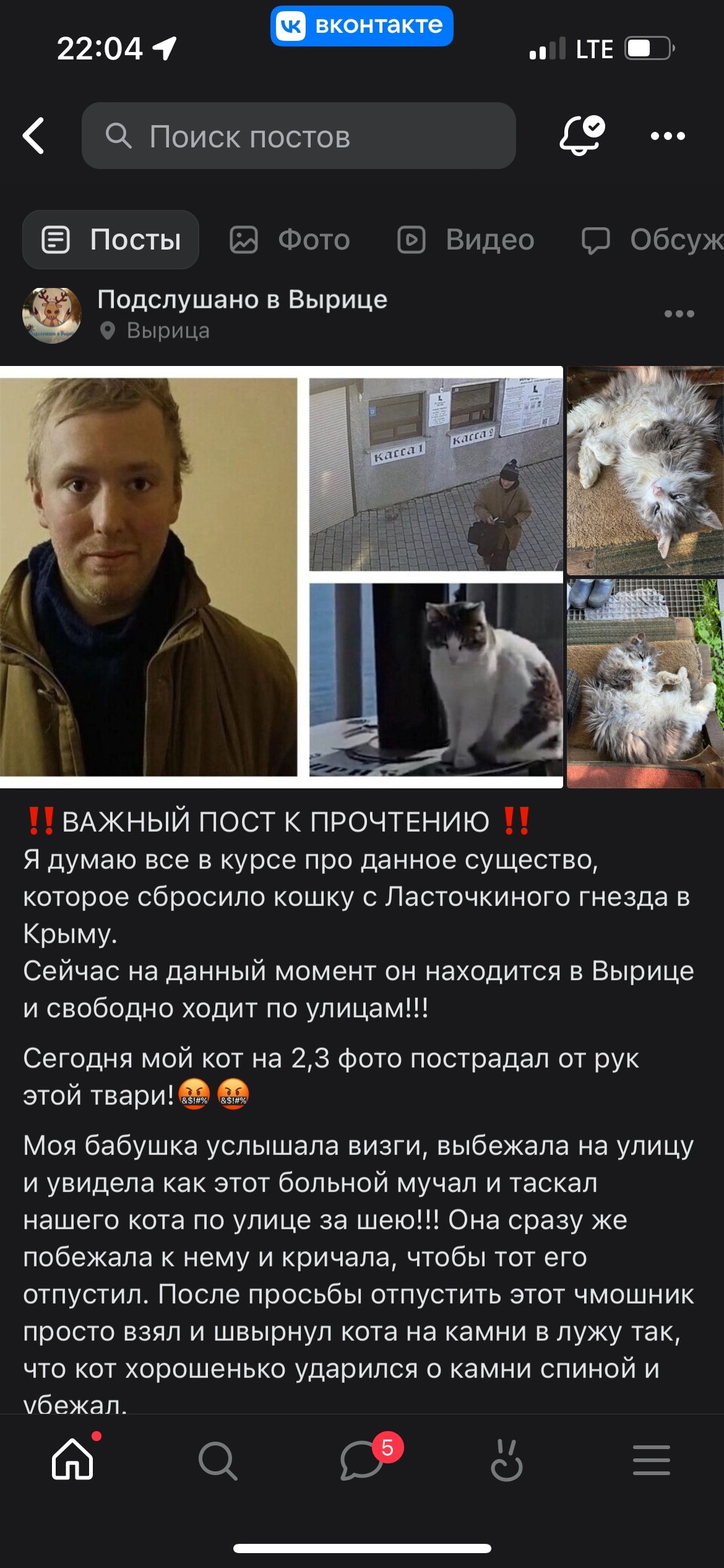 пропала кошечка. зовут ПАНТИ, достаточно возрастная, может быть немного заторможенной. если к кому прибилась или кто чего похуже видел, прошу обязательно сообщить, если будет возможность с фото. естественно, кто найдет получит вознаграждение! очень страшно, поскольку живет какой-то псих-живодер, хотелось бы найти побыстрее. поселок: ВЫРИЦА (лен.обл.)