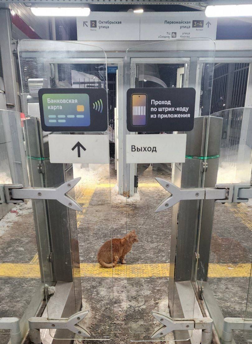 Рыжий котик, ходит на станции Сходня, пугается, но даётся погладить.