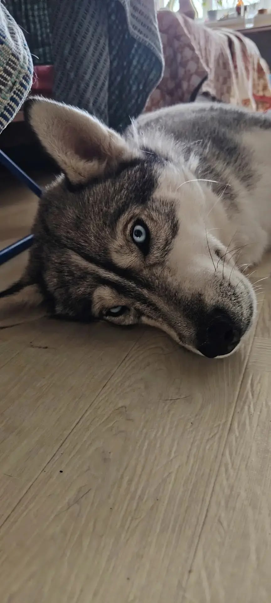 На Дачном проспекте найден хаски, мальчик, возраст 5-6 лет. Чей потеряшка? Ошейника нет, чипа, клейма тоже.