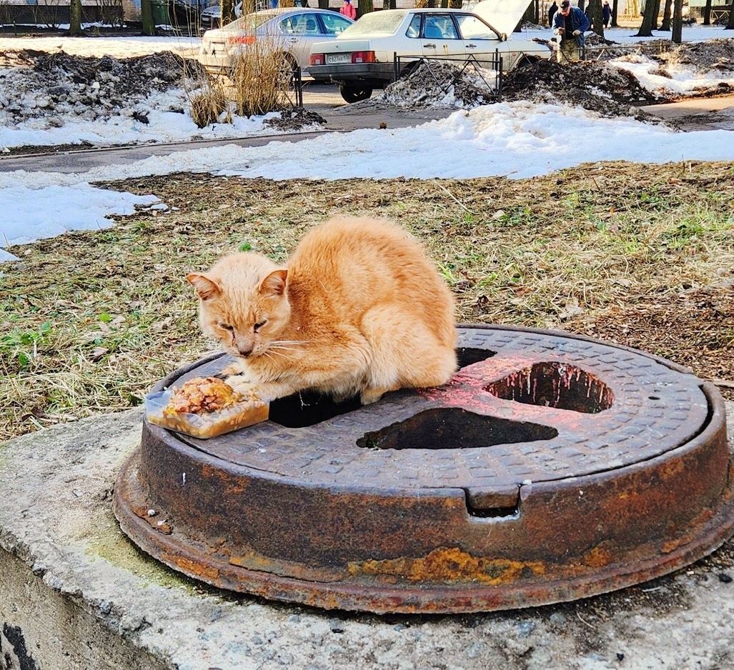 Женщина сегодня проездом была, заметила котика несчастного, который отказался от еды. Видимо совсем плох.