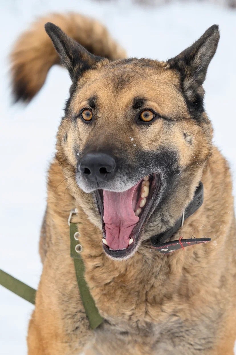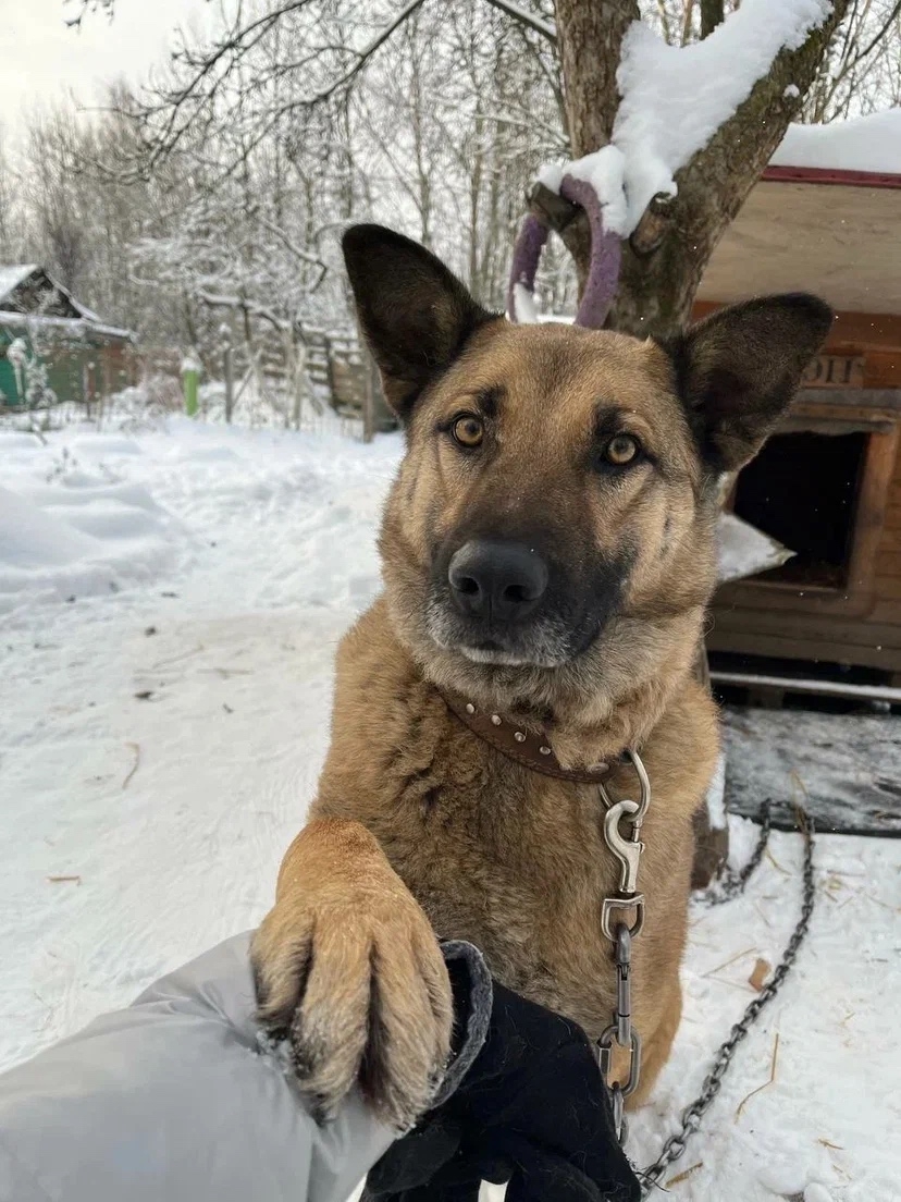 Очень энергичный и сильный парень. Метис овчарки. Знает базовые команды. На прогулке не убегает, команда «ко мне» на отлично. Сейчас Дэн живет в приюте. Хорошо ладит с детьми и собаками-девочками. С котами не дружит.