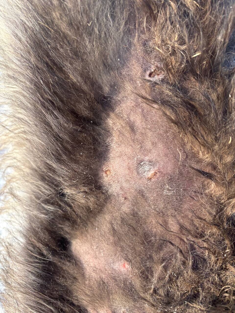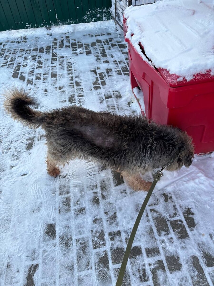Но у Кардамона появилась новая беда — он начал облысевать. То ли это лишай (в приюте сейчас настоящая эпидемия, об эпидемиях мы обязательно напишем отдельно), то ли экзема от «качественного» приютского корма. Но факт остаётся фактом: полулысая, покрытая ранами собака сидит в уличном вольере при температуре –25 градусов.