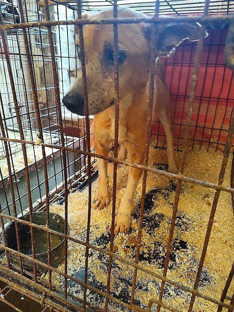 🔥Посмотрите на эту фотографию. Это не собака. Это — тень. Это — скомканный комочек боли, зарывшийся в грязные опилки в самом дальнем углу клетки.
