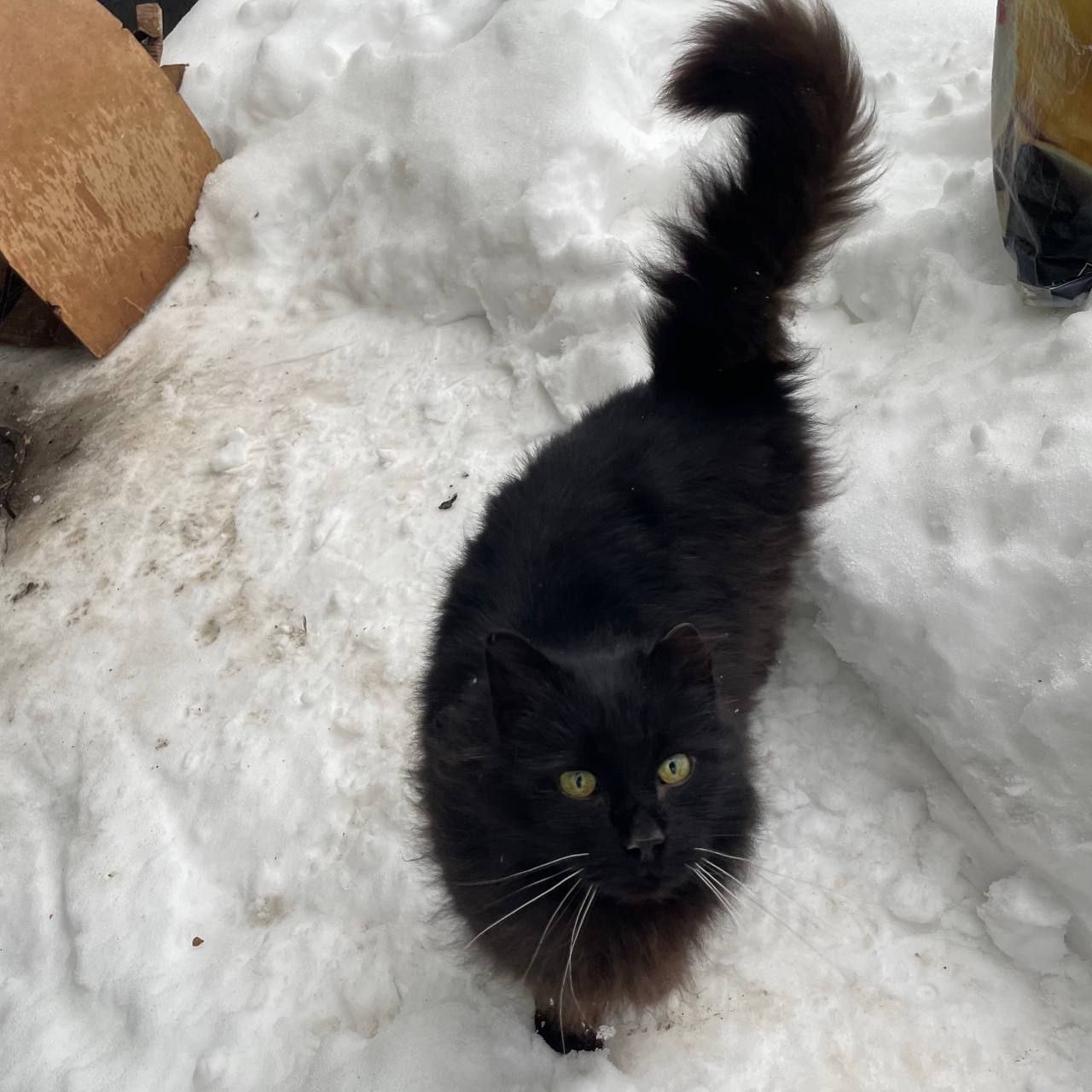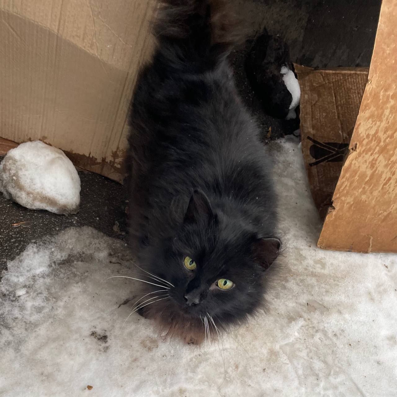 Домашний кот появился на улице! Крупный и пушистый.