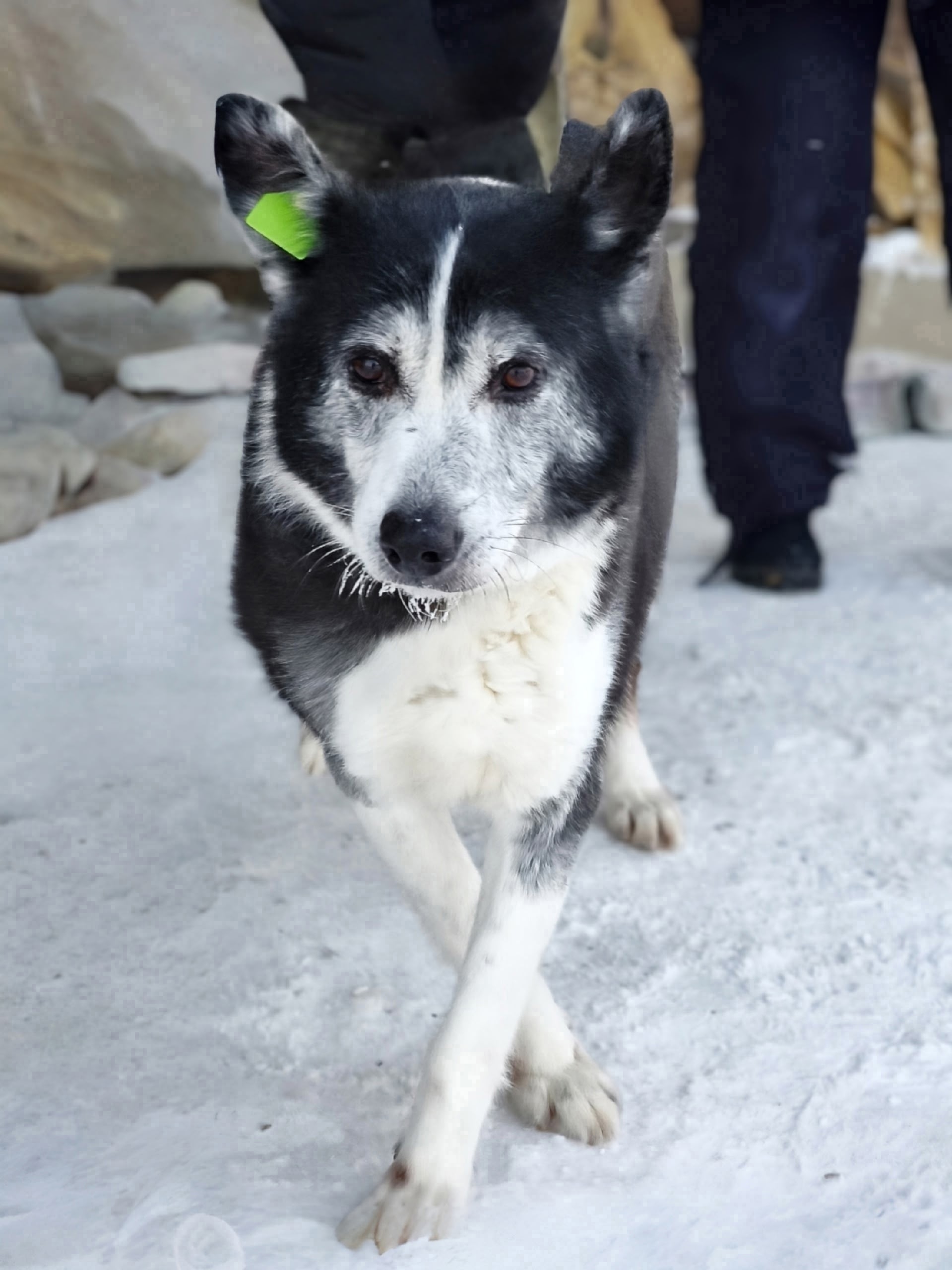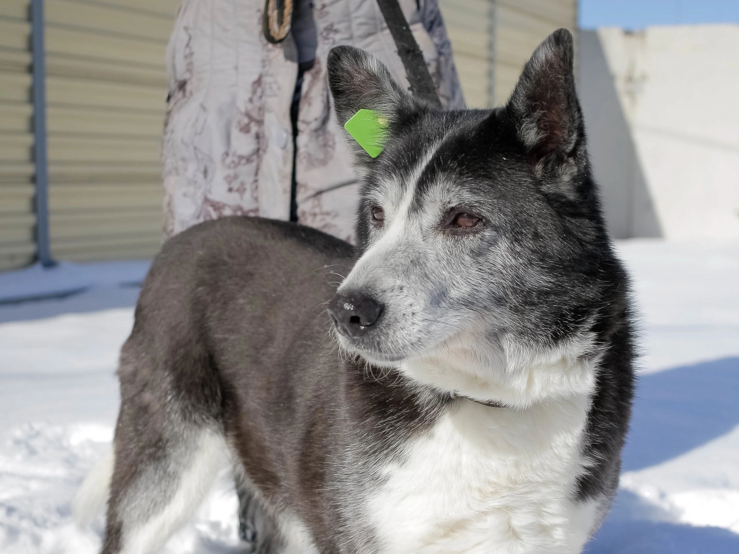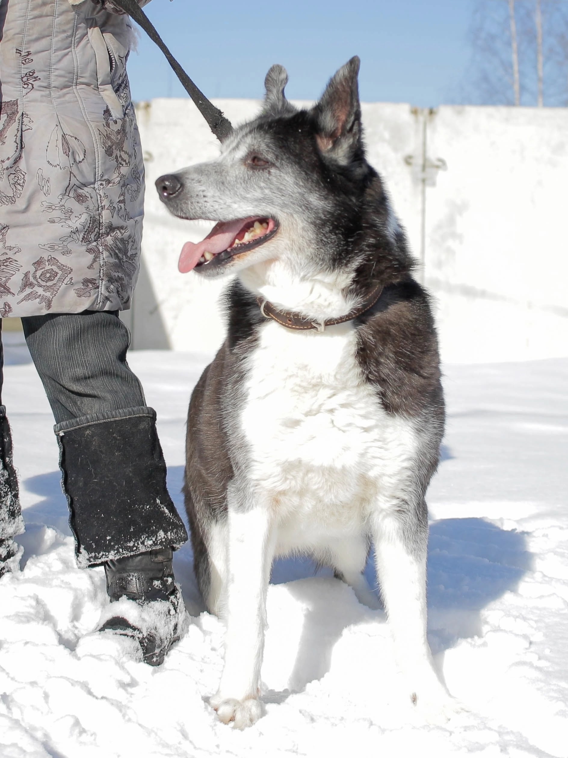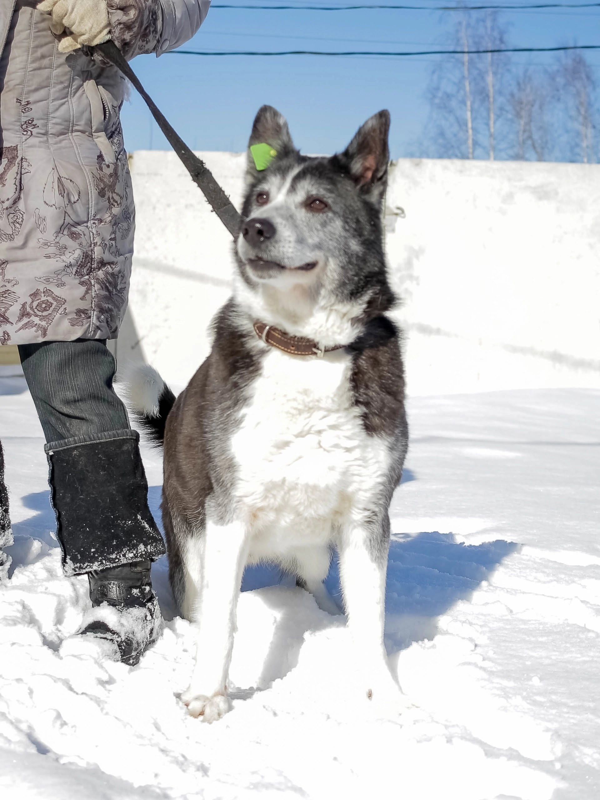 К тем, кому доверяет, подходит спокойно и ждёт, когда пристегнут поводок и поведут на прогулку.