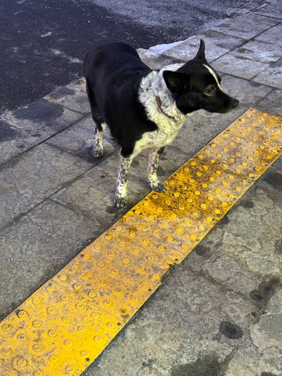 У станции Переделкино со стороны выхода к храму собачка стоит,..