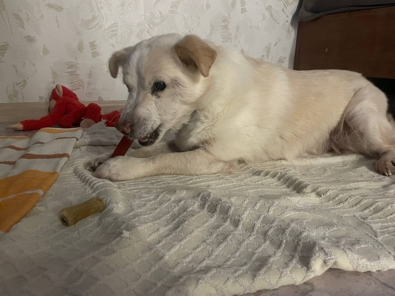 Возраст около 7 лет. Рост до середины икры, вес 10 кг.