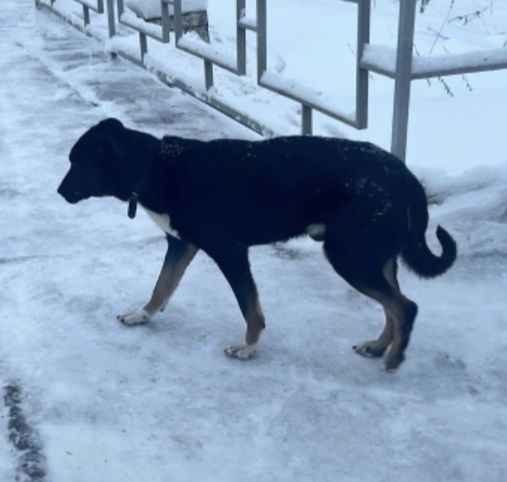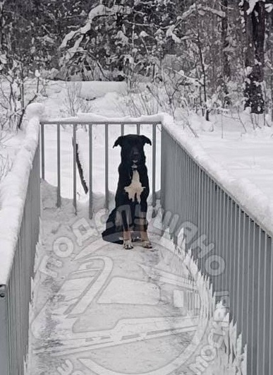На платформе Луч в сторону Москвы сидит собачка. Кобелек. Появился либо ночью, либо рано утром. С ошейником. Голодный. Может с кем-то приехал на электричке.