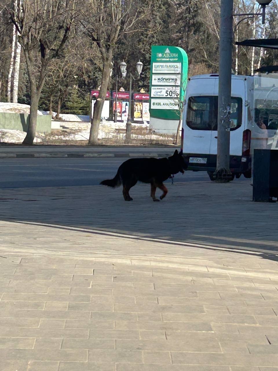 Овчарка, оторвана цепь, бегает у остановки дворец и особо не убегает, видно что домашний.