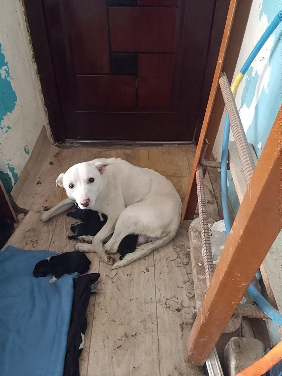 В подъезде родила бездомная собака.