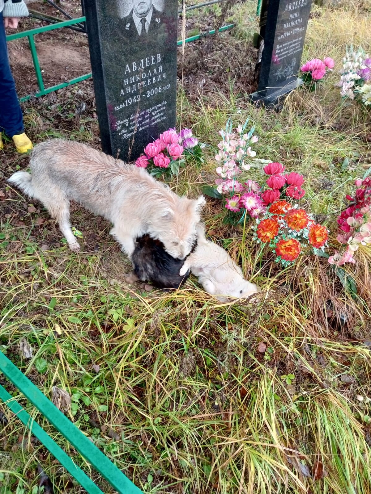 На кладбище выживает мамка с двумя щенками, но судя по сиськам щенков было больше.