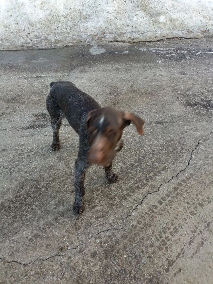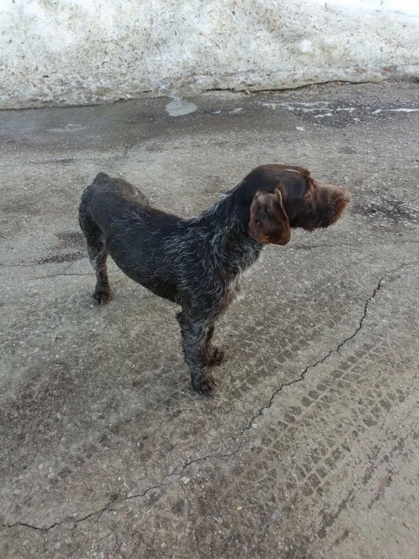 Вторую неделю бегает сука дратхаара. Была в красном ошейнике, сейчас уже без него. Фото сделано местными жителями.
