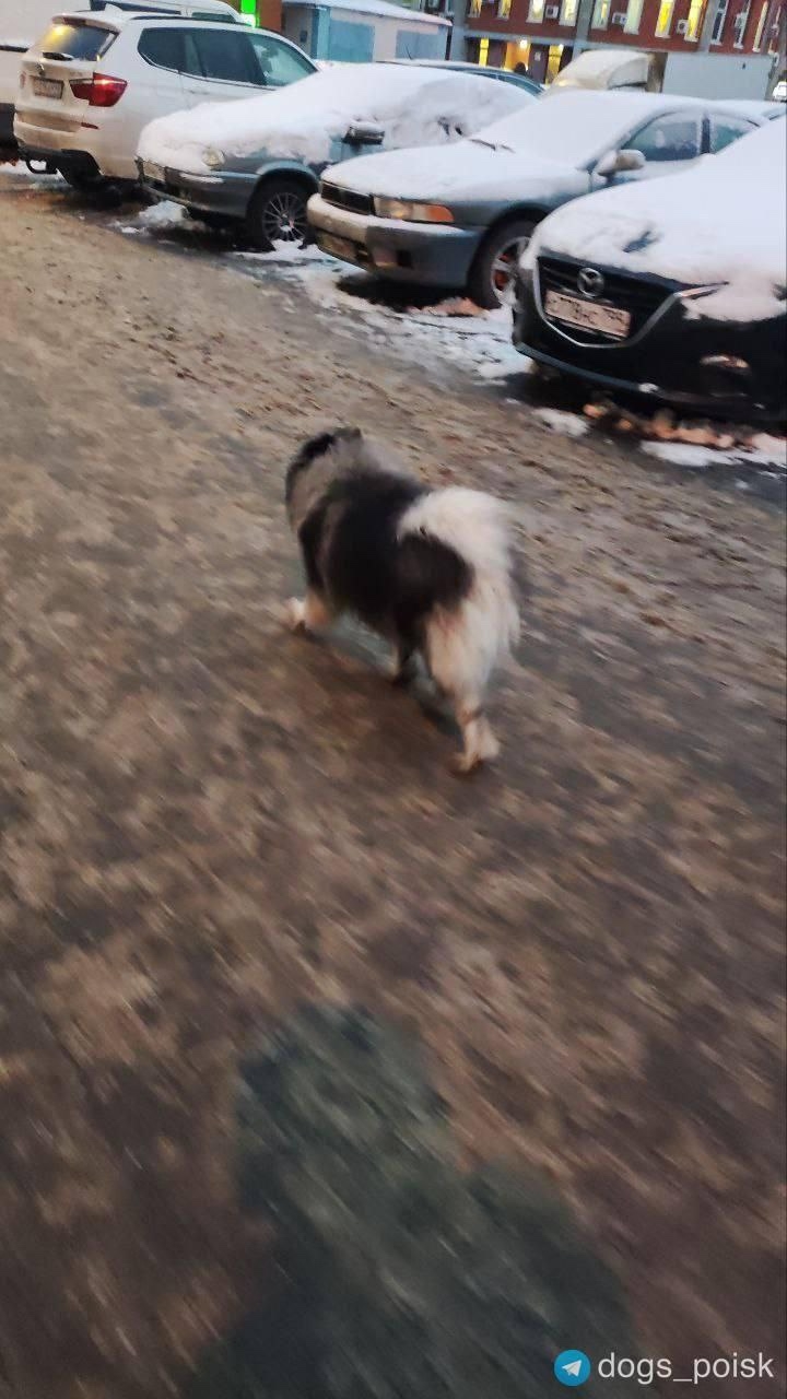 У школы рядом с метро Домодедовская, бегает собачка пушистая, черный с белым, серым окрас, без ошейника. Может чья-то потеряшка