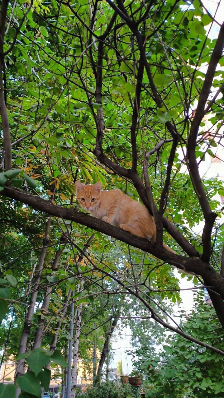 Замечен котенок подросток, рыжий, скачет по дереву, возможно потерялся