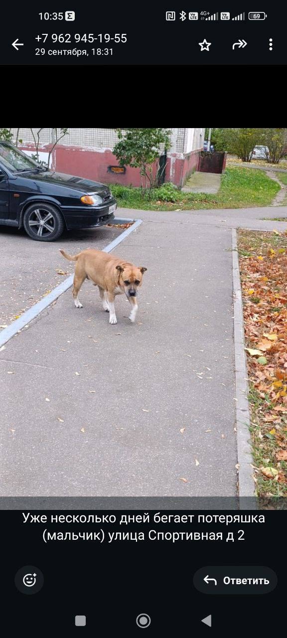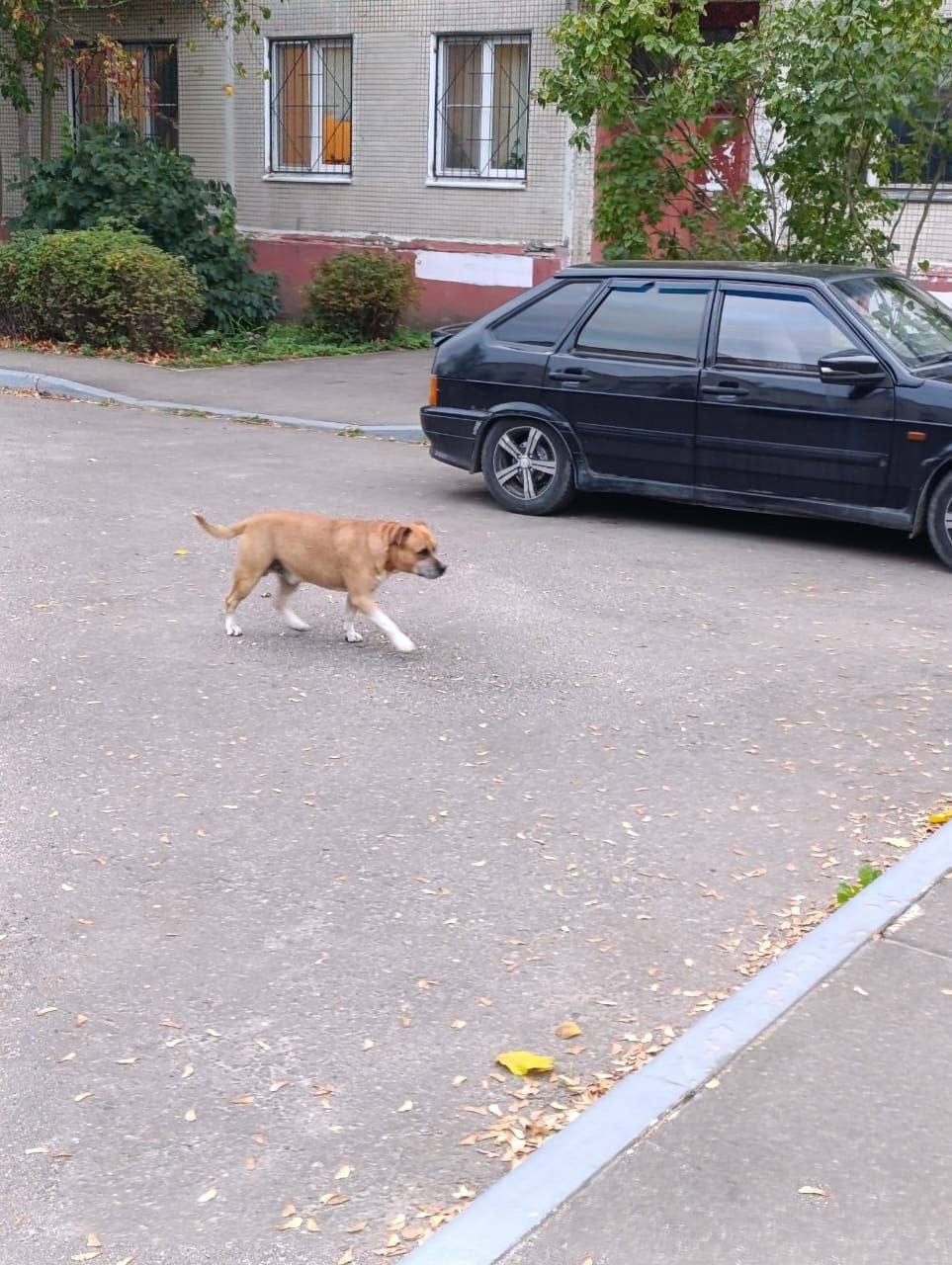 Рыжий кобель, “бойцовской” породы, ходит уже больше недели. Ошейника нет