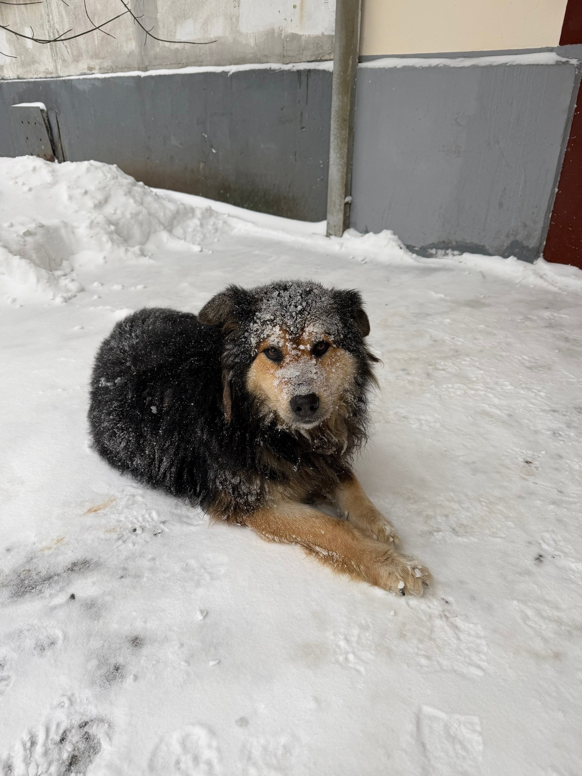 У подъезда второй день сидит собака. Далеко от дома не отходит, от еды отказывается, явно кого-то ждёт. Может кто-то ищет потеряшку.