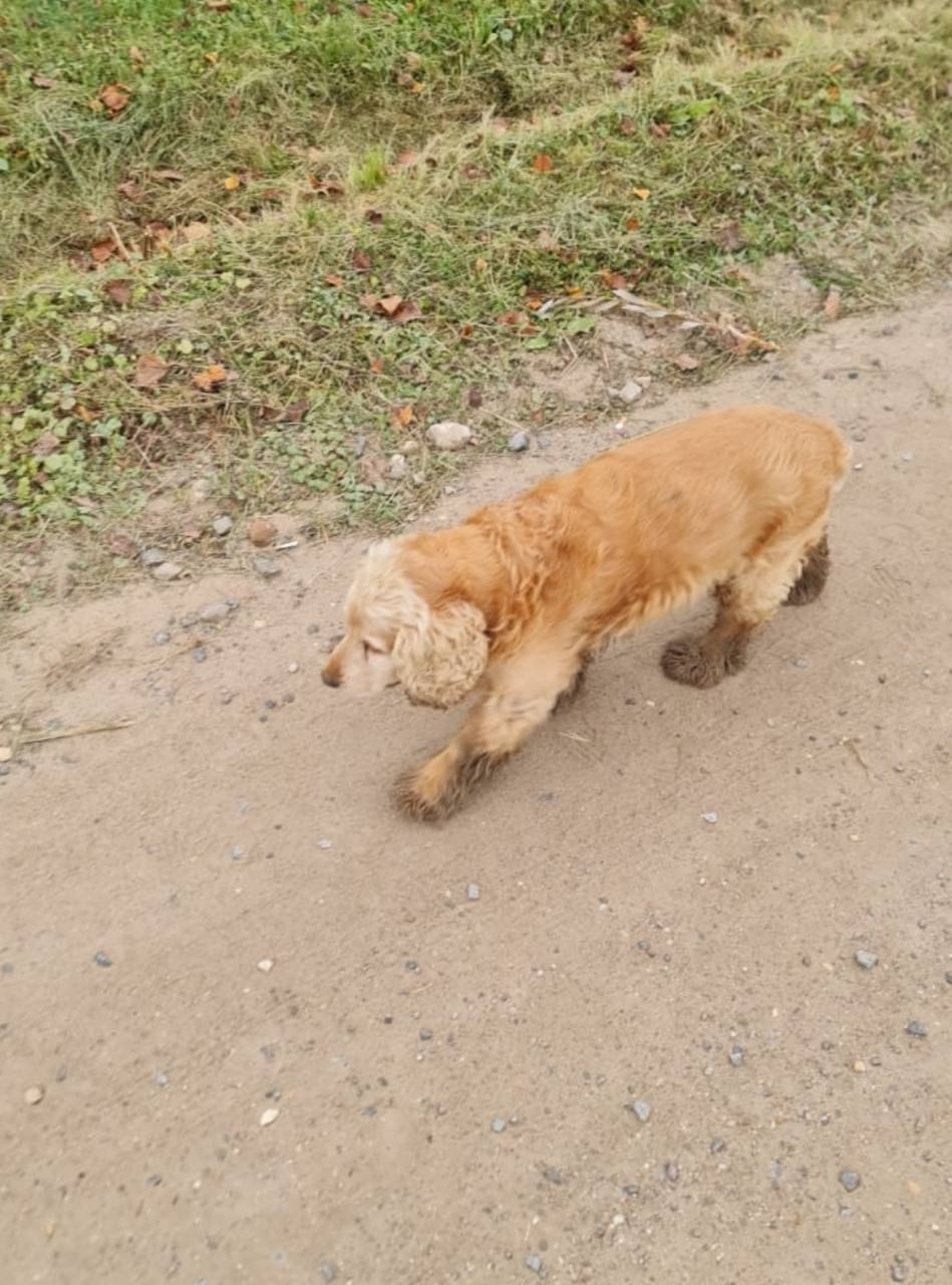 Спаниель, без ошейника , гуляет один третий день по д.Зверково , весь грязный. Сообщают, что бегает еще с лета. Кто потерял ?