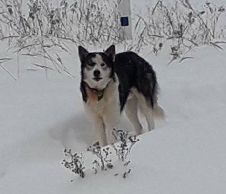 Возле трассы А-107, по направлению из г. Бронницы, (после Новобронницкого кладбища), справой стороны, при въезде на газовую просеку замечен пёс, предположительно Западносибирская лайка/ Фенотип Хаски. Грудь и передние лапы белые, лопатка (-и) темно-коричневые. Был в ошейнике (болтался темный “хвост” ошейника, возможно брезентовый). До просеки вдоль леса была цепочка свежих следов, возможно он и брёл вдоль леса.