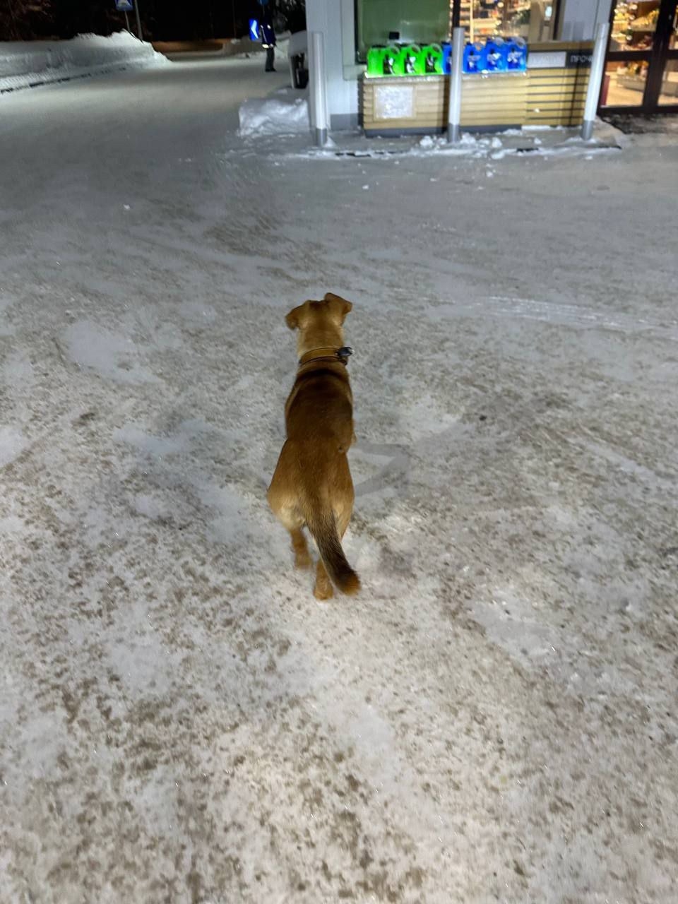 Девочка с заправки говорит бродит тут уже пару дней. Голодный, очень ласковый и активный.