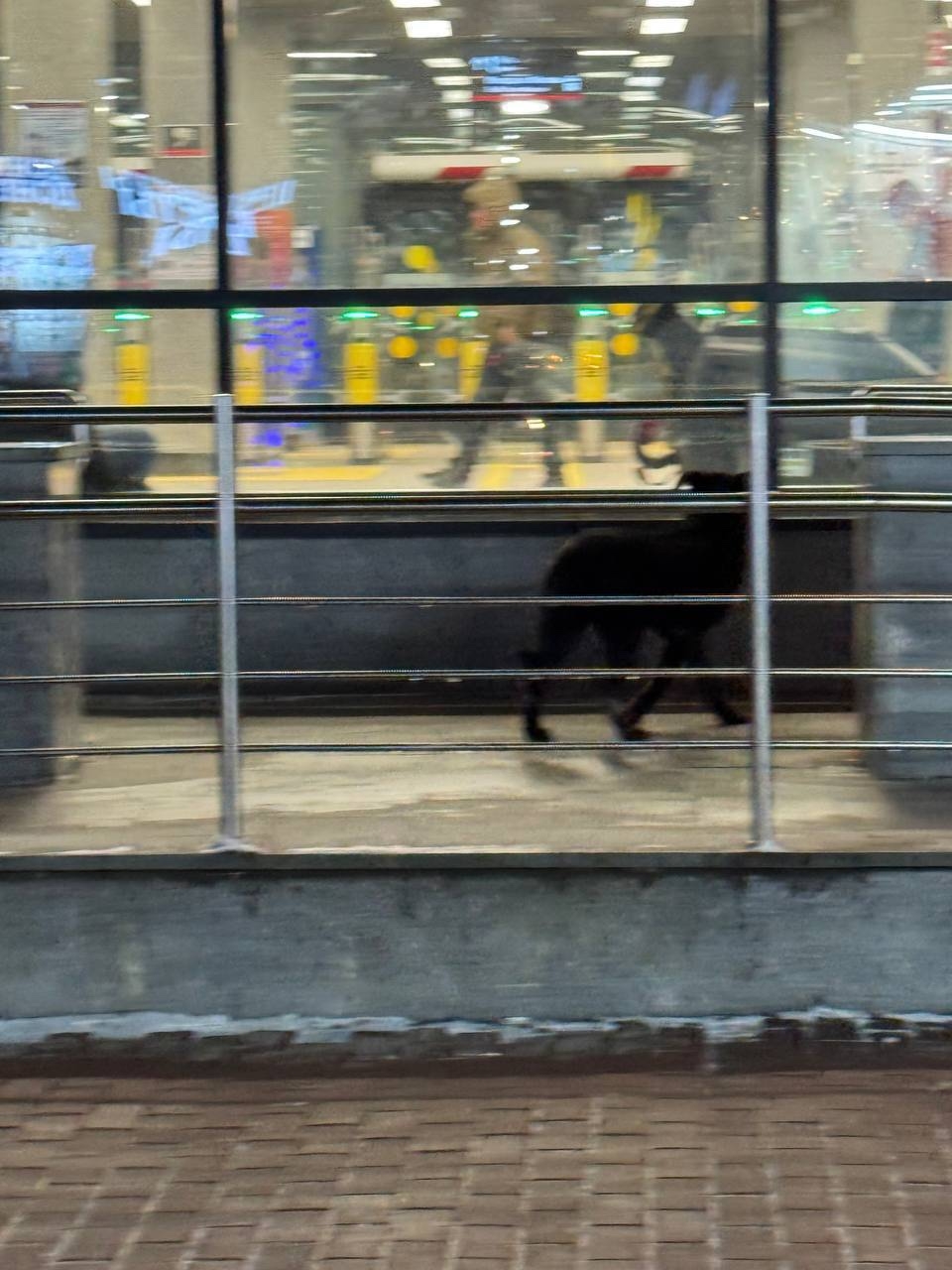 Замечена собака 18.01.26 МЦД Подольск бегает черный щенок, пытается..