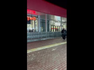 бегает черный щенок, пытается зайти в вокзал, чтобы погреться