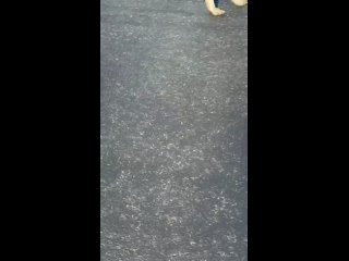 Не понимает что такое машины идет прямо по проезжей части. Убежал на новую дорогу к Ривьере