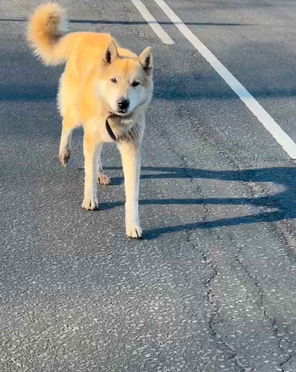 Срочно на дороге собака!!! Бежал по платке. Очень устал, пыталась поймать, он шарахнулся на дорогу.
