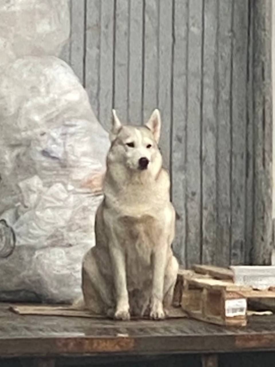 Хаски, Сидит у двух “пятерочек”, на Старом Городке уже несколько недель. Ждёт хозяев. Может кто-то знает.