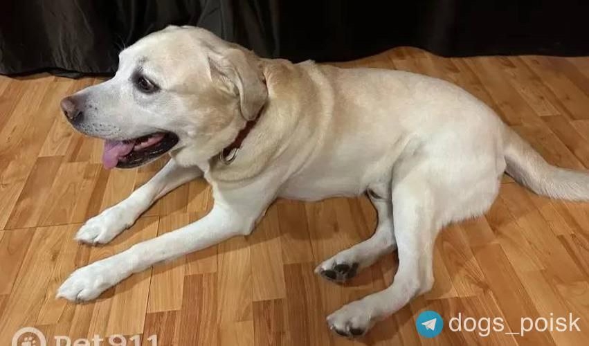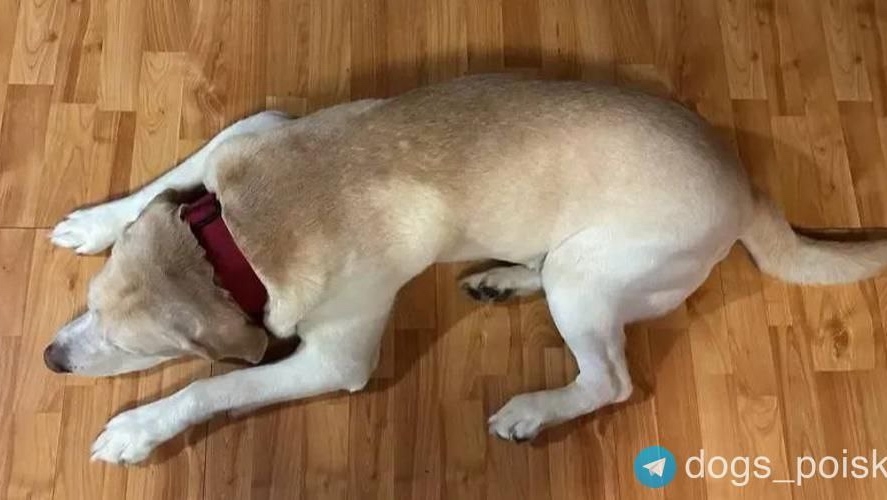 Палевый окрас, лабрадор, кобель, в красном ошейнике. Бегал, все что-то искал, на улице не было никого