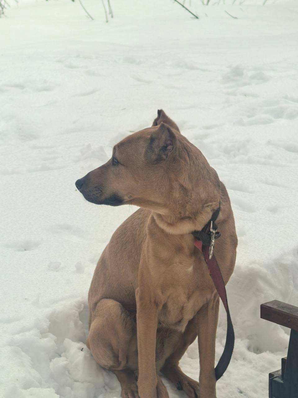 Знакомая только что прислала, собаку привязали к скамейке около пруда, за Сетунькой, рядом с церковью. Сколько просидела там непонятно, дрожала. Сейчас знакомая отвела её в Универ на Сколковском, взять к себе ге может, у неё девочка Стаффорд и коты
